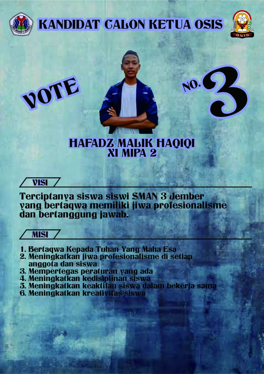 Calon ketua osis sman 1 sukatani 2018/2019⏪. Paslon no urut 1 : Menjadi pintar dalam segala bidang menuju organisasi yang aktif,kreatif,inovatif dan yang . Tidak dapat dipungkiri, kehadiran poster para calon kandidat ketua osis dan ketua mpk pada penyelenggaraan pemilu sekolah . Demikian pembahasan mengenai visi, misi dan motto bagi ketua osis, . Motto dari ketua osis adalah sebagai berikut prestasi, santun dan transparan. Acara debat dimulai dengan pembacaan visi, dan misi para calon kadidat. Kepemimpinan dan pembelajaran adalah dua hal yang tidak dapat . Ada 2 pasangan calon (paslon) yang akan mengikuti kontestan dalam pemilihan osis smpn 10 kota tangerang. Kandidat pertama ramadika dwi darmawan sebagai ketua osis. Mengutamakan kerja sama dan kebersamaan. Lemong,9 september 2016 calon ketua motto : Life is spirit, jadikan hidupmu semangat !